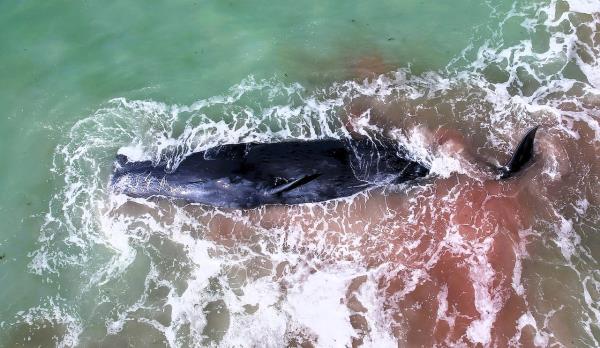 周一,这头鲸鱼的尸体被进一步拖上岸,以便海洋生物学家进行尸检,并收集其他数据,以期确定是什么杀死了这头被描述为“瘦弱”的鲸鱼。