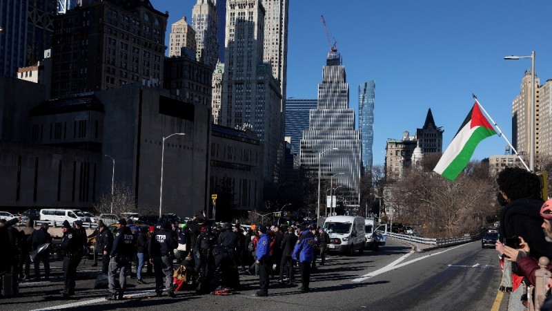 周一,亲巴勒斯坦抗议者封锁了纽约市的几座桥梁和一条隧道,要求立即停火,随后警方逮捕了数百名抗议者,并重新开放了道路。以色列和哈马斯之间的冲突已经持续了三个月。