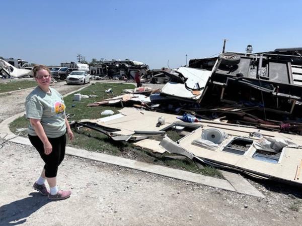 雪莉·威廉姆斯(Sherri Williams)和她的丈夫比尔(Bill)拥有这个码头,她说他们在手机上看到了龙卷风警告,就在码头和房车停车场周围按喇叭,告诉人们找个地方躲起来。