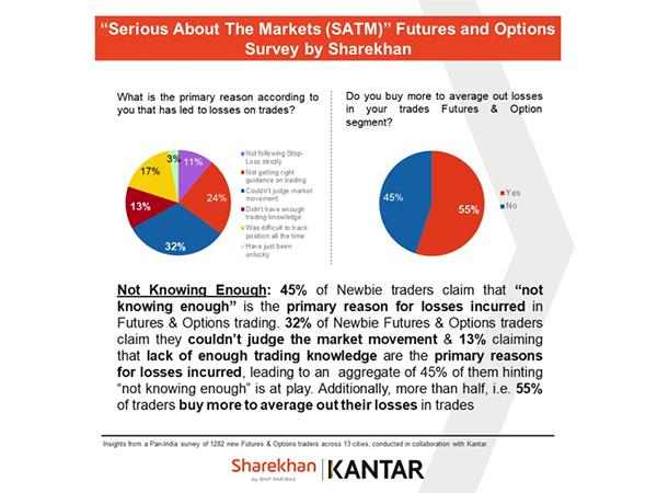 孟买(马哈拉施特拉邦)[印度]12月30日:印度最值得信赖的全方位服务在线经纪公司之一Sharekhan在其与Kantar联合进行的“认真对待市场”泛印度研究中发现了一个令人担忧的趋势。研究发现,32%的期货和期权新手交易员声称他们无法判断市场走势,13%的人声称缺乏足够的交易知识是造成损失的主要原因,导致其中45%的人暗示“了解不够”。此外,超过一半(即55%)的交易者买入更多的股票,以抵消他们在交易中的损失。