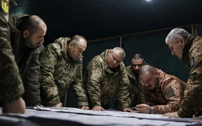 瑟尔斯基上将和乌克兰国防部长乌梅罗夫参观了前线城市附近的一个指挥所。