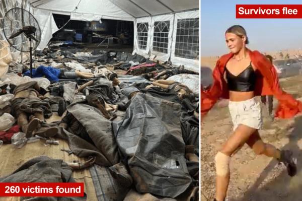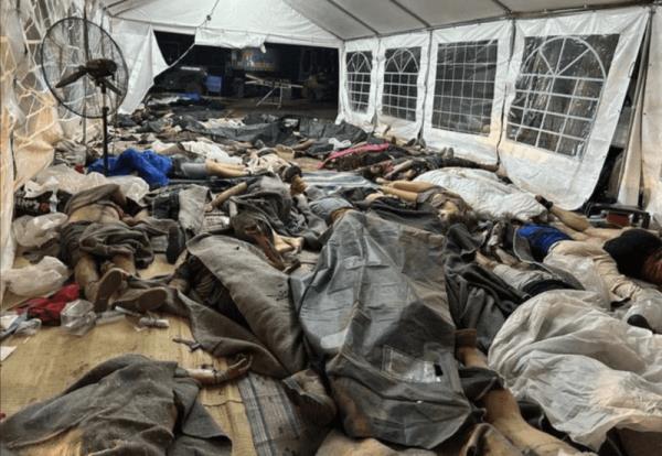 最新发布的图片显示,数十名死者躺在狂欢的帐篷里。全副武装的巴勒斯坦恐怖分子星期六凌晨越过加沙地带边界,对以色列发动偷袭,狂欢变成了血腥的混乱。