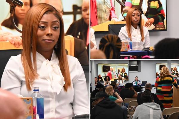 “我们在这里互相帮助,而不是互相伤害。很遗憾,我们——我们,我在和我的黑人和棕色人种社区说话——会坐在这里打架,”据称,在周二晚上的会议上,她拿着一个金色麦克风补充道。