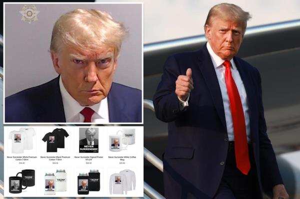 报道称,在特朗普历史性的、愁眉紧锁的大头照被印在竞选商品上,强调他“永远不会投降”后不久,他的筹款数字“飙升”。