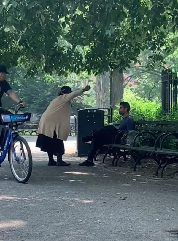 这名女子被发现在附近的一家露天餐厅斥责公园游客,骚扰用餐者,迫使一些人逃跑,留下其他人只是摇头。