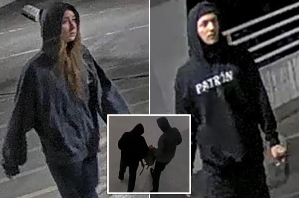监控录像显示,这对年轻男女在弗拉特布什大道附近的U大道国王广场购物中心(Kings Plaza Mall)的停车场里,他穿着一件黑色Patrón龙舌兰(Tequila)运动衫,她也穿着一件连帽衫,金色的长发飘逸。