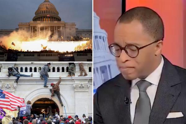 MSNBC的主持人乔纳森·卡佩哈特强忍着眼泪,在2021年1月6日国会大厦袭击三周年的一个节目中被迫拿出一张纸巾。