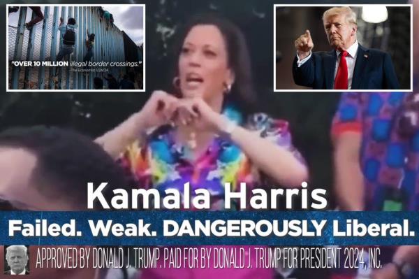 唐纳德·特朗普的总统竞选团队发布了一则新的攻击广告,目标是可能获得民主党提名的副总统卡玛拉·哈里斯,称她是一个效率低下、“危险的自由派”领导人,未能确保美墨边境的安全。
