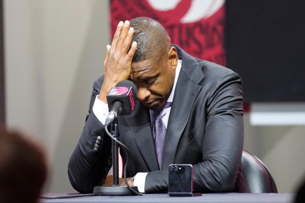 猛龙队棒球运营总裁乌吉里(Ujiri)站在为球队媒体日聚集的拥挤的房子前面,正在处理他的朋友和导师的去世。