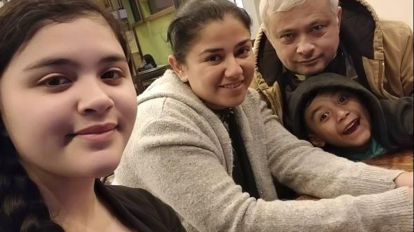 Natalya Ivaniuk说,俄罗斯轰炸的爆炸声弥漫在空气中,而她和她的两个女儿,一个7岁,一个9岁,逃离了他们在附近村庄Myrnohrad的家,那里距离前线不到10公里。