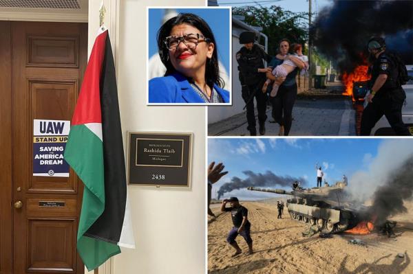 密歇根州民主党众议员拉希达·特莱布(Rashida Tlaib)在哈马斯恐怖分子屠杀无辜的以色列人之后,仍在国会大厦办公室外展示巴勒斯坦国旗,导致一名议员正式推动“结束这种愚蠢行为”。