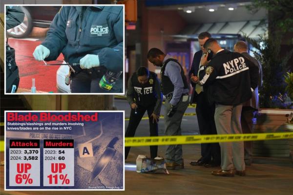 纽约警察局表示,今年因持刀伤人和砍人被捕的人数(2668人)比2023年(2411人)增加了11%。