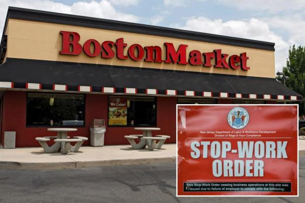 新泽西州劳工官员暂时关闭了二十多家波士顿市场(Boston Market)餐厅,此前他们发现了多起侵犯工人权利的行为,包括拖欠314名员工60多万美元的工资。