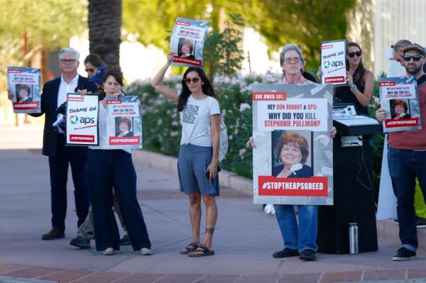 亚利桑那州公共服务机构(APS)于2018年9月切断了普尔曼的电源,当时她在凤凰城以西的退休社区的室外温度达到了107华氏度(41.6摄氏度)。