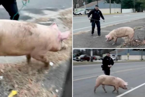 警方称,大约30分钟后,这只4岁的小猪被抓获。
